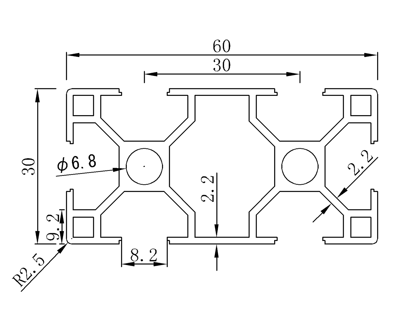 Aluminium profile with dimensions of 30 x 60 mm. The price is given for 1 m. The maximum length of one profile is 4 m. full description and parameters