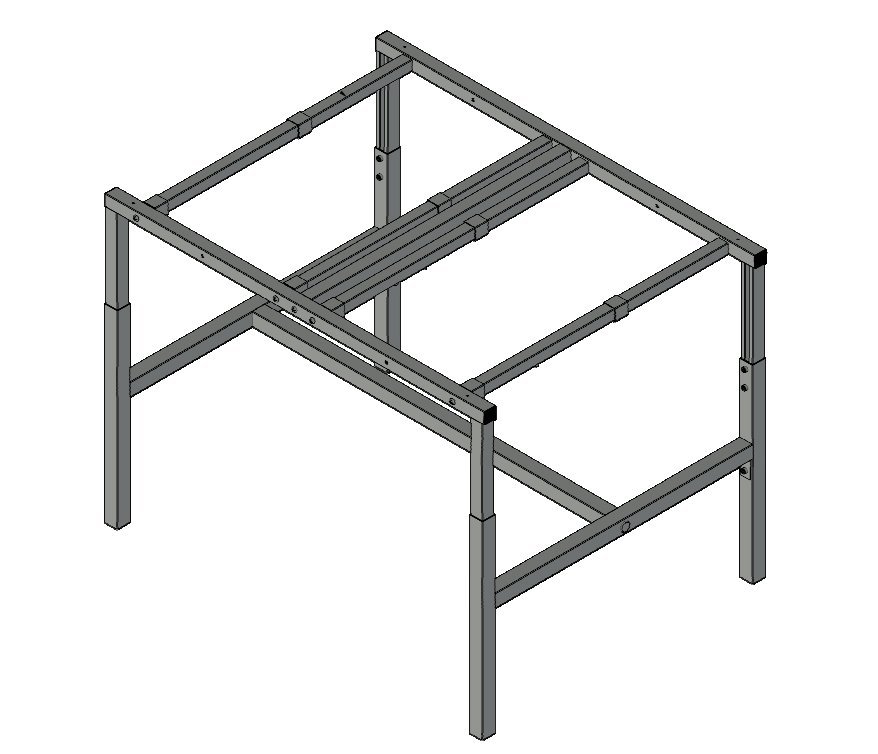 Base for height-adjustable antistatic table made of solid steel profiles. Dimensions 650 - 950 x 1500 x 900 mm.