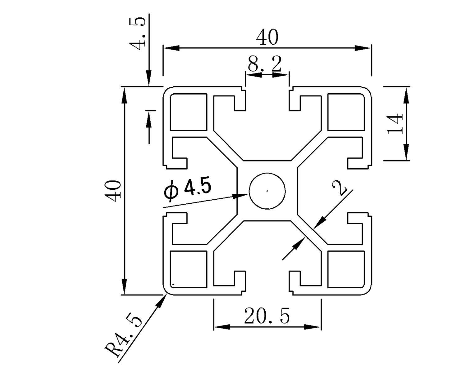 Aluminum profile 40 x 40, KA-4040 1 m + cut to size