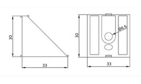 An angle with an angle of 45° for joining profiles. Dimensions 30 x 33 x 33 mm. Fixing material is not included in the package. full description and parameters