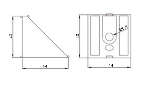 An angle with an angle of 45° for joining profiles. Dimensions 40 x 44 x 44 mm. Fixing material is not included in the package. full description and parameters