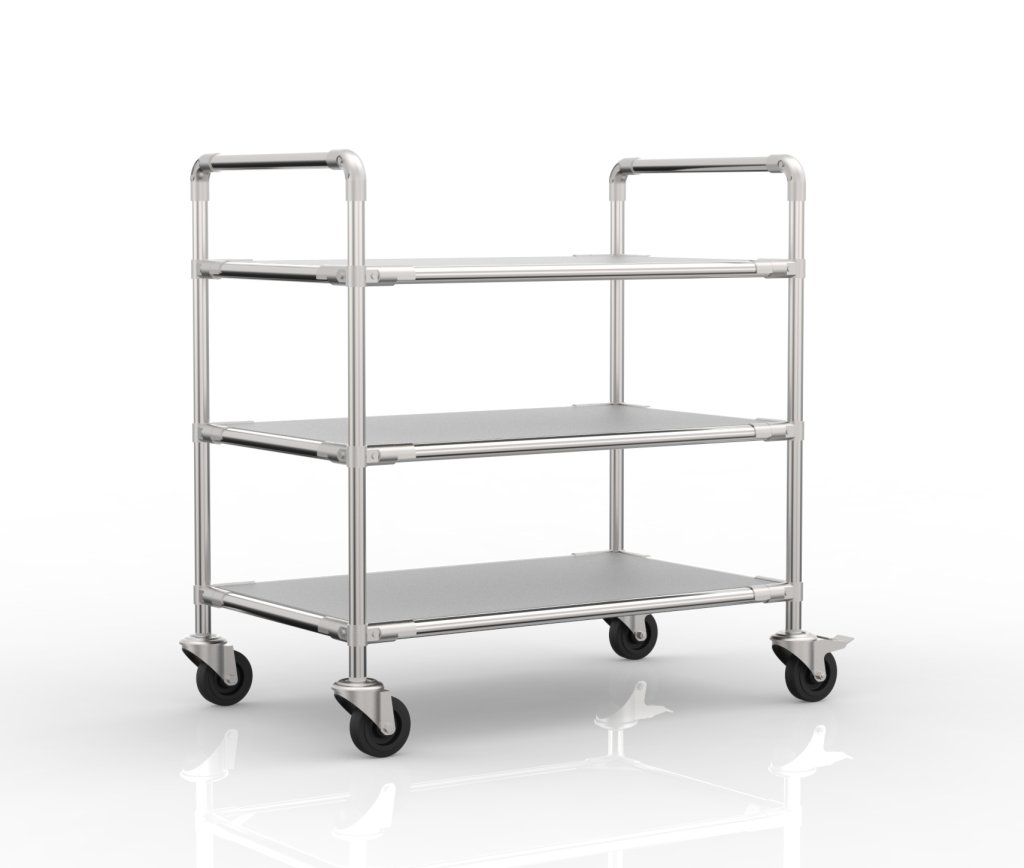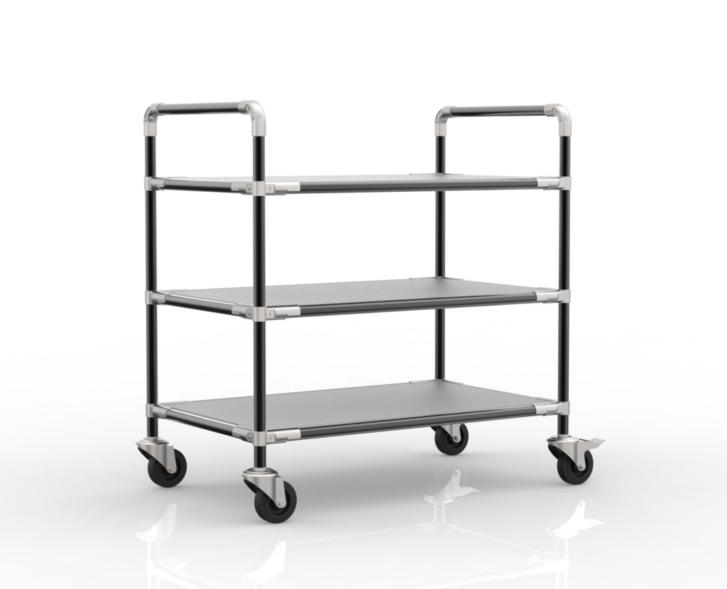 The antistatic rack trolley from the tubular modular system is the ideal choice for handling goods sensitive to electrostatic discharge. The cart includes an ESD laminate board with a thickness of 18 mm. Dimensions 964 x 918 x 568 mm, wheel diameter 100 mm.