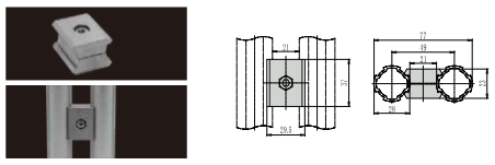 Aluminum conjunction AJA -08_H. Price for 1 pc without connecting material. Due to the more robust profile, these conjunctions are only compatible with products marked HEAVY. Weight 50 g.