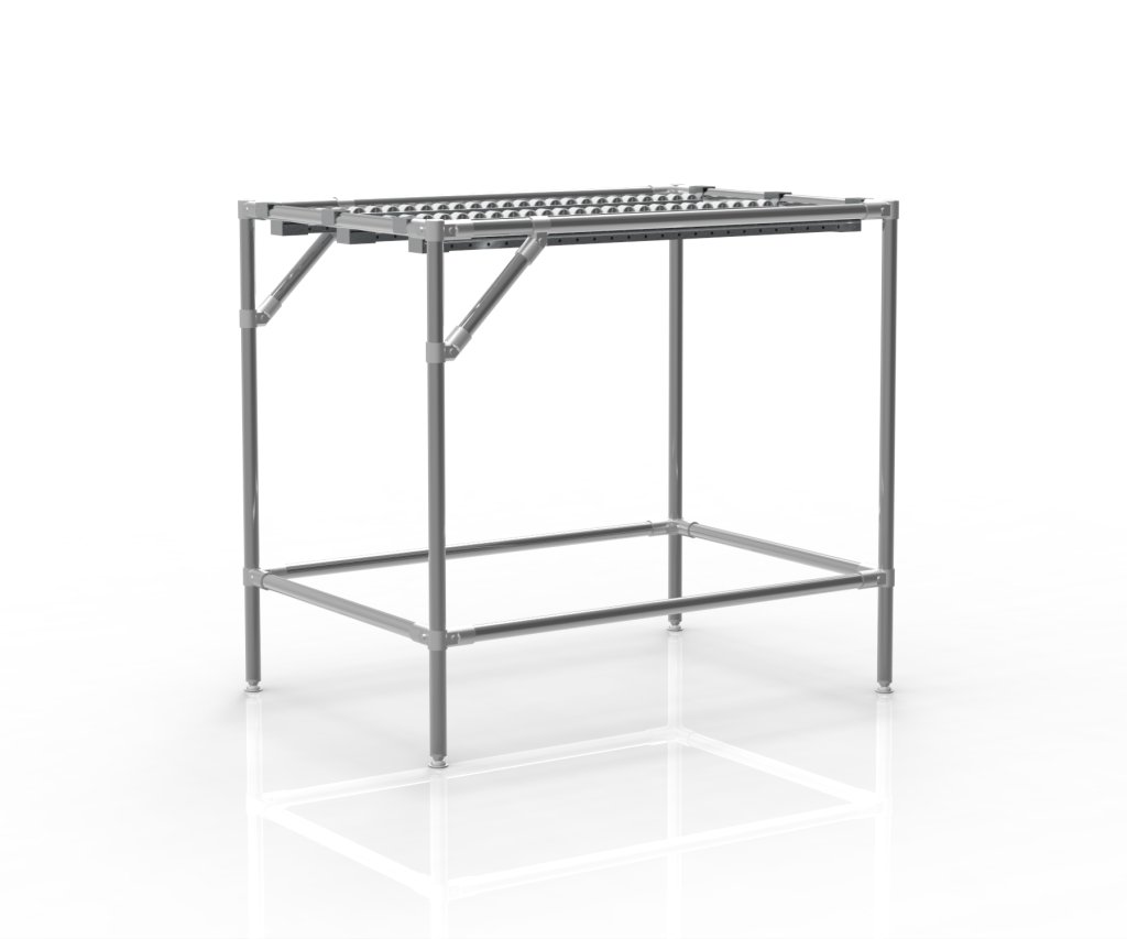 The conveyor system with recessed roller tracks (also known as roller conveyors) is ideal for the smooth transport of KLT boxes, packages, and other individual products. Thanks to its modular tubular design, the system can be easily adapted and customized to meet specific operational requirements.