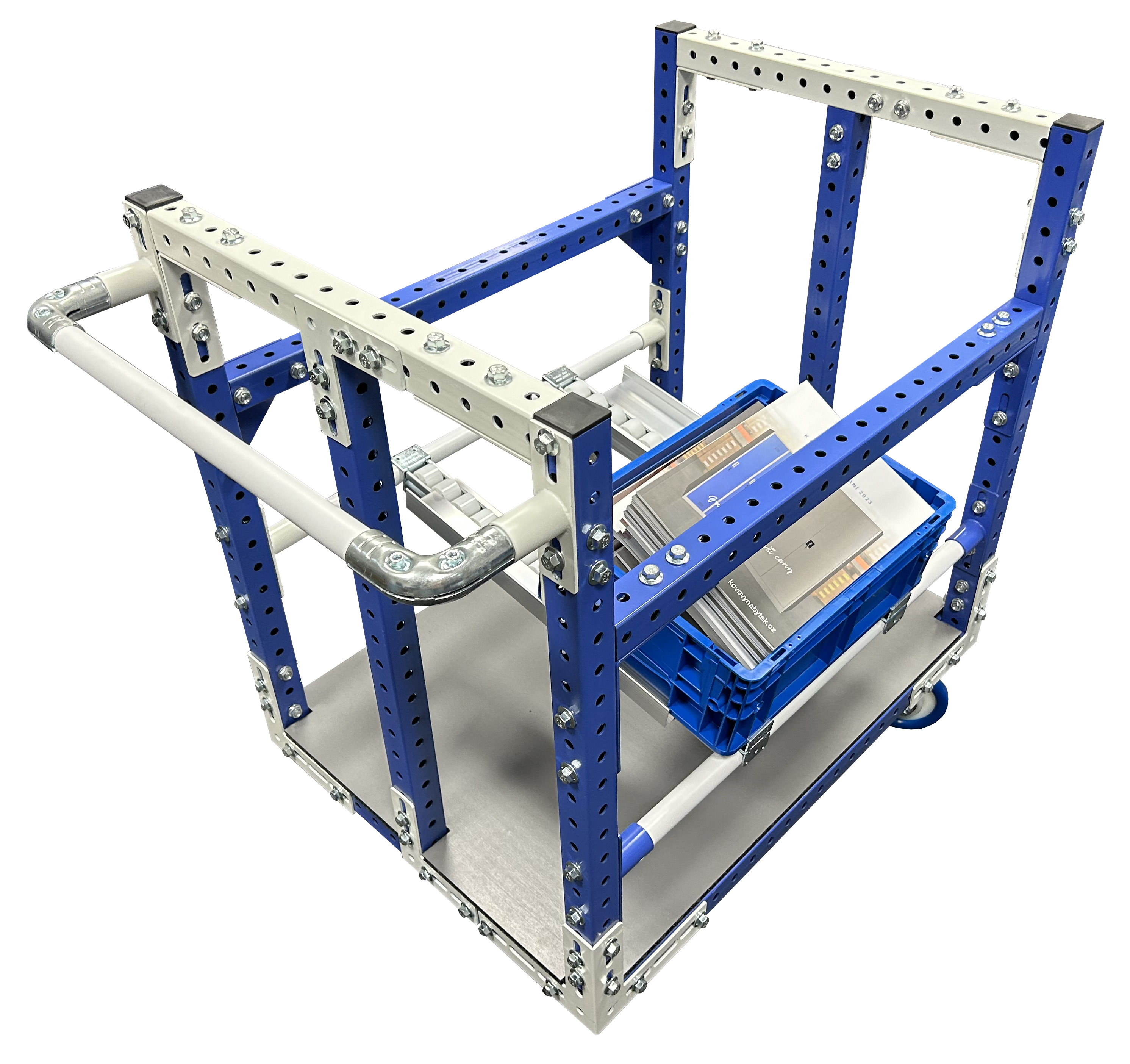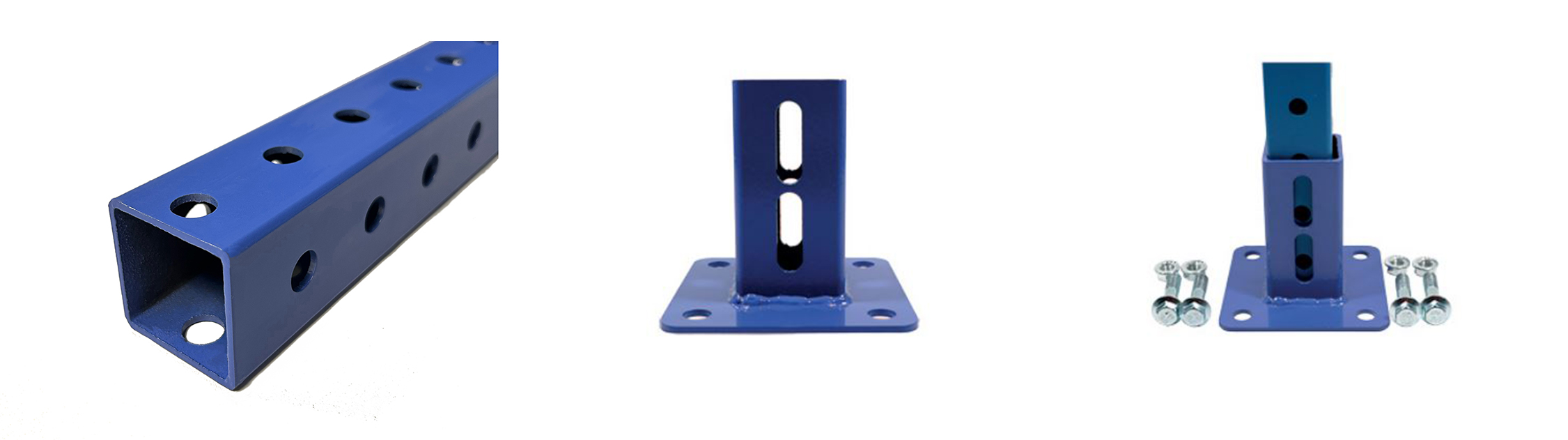 The basis of the entire system are perforated square tubes with a dimension of 40 x 40 mm and a material thickness of 2 mm. Regular perforation is not only an aesthetic element, but also an effective way to save time during assembly. Each square tube comes with a precise arrangement of holes, which simplifies and speeds up the assembly process without the employee having to deal with additional material modification. The system uses M10 threaded bolts for the accessories and M8 for the wheels. In addition, the entire system can be assembled with just 2 wrenches without the need for welding.