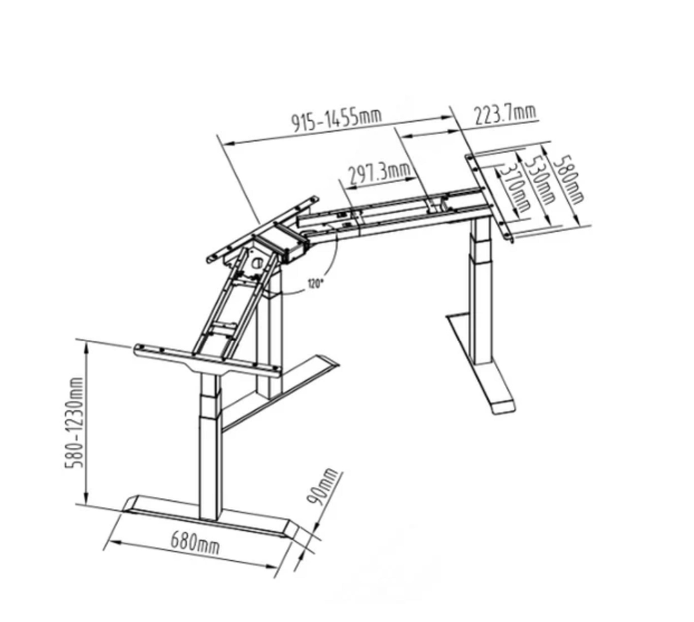 Electrically height-adjustable desk frame with ultra-quiet and smooth operation. Thanks to three high-performance motors, you can enjoy silent height adjustments with noise levels below 50 dB – ideal for shared workspaces. With a lifting speed of 38 mm/s, switching between sitting and standing is quick and effortless. The recommended L - shaped desktop at a 90° angle is 1300 – 1900 × 600 – 800 mm. The recommended I-shaped desktop at a 180° angle is 1700 – 2900 × 600 – 1000 mm.