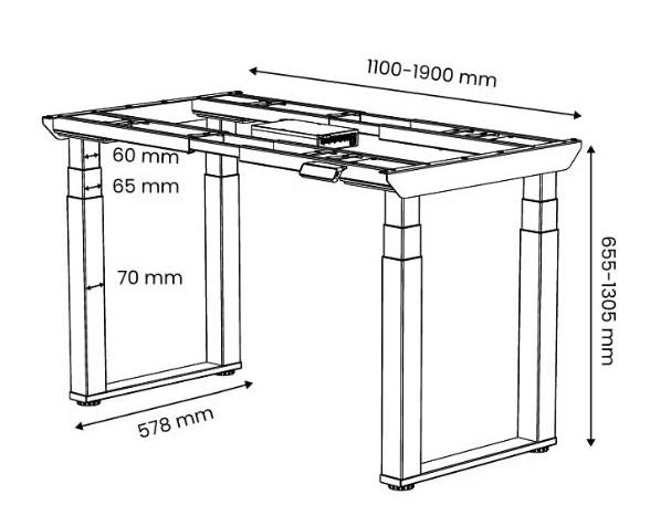 Electric height-adjustable desk frame with a range of 655 - 1305 mm, load capacity 300 kg. Smooth height adjustment with a lifting full description and parameters