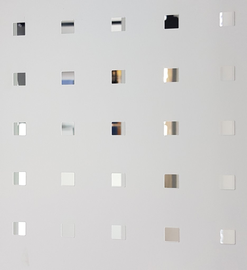 Perforated panel, ideal for hanging tools and quick access to fasteners. Dimensions 2000 x 1000 mm, thickness 1.4 mm, square holes 10 x 10 mm, hole spacing 38 x 38 mm, color grey RAL 7035.