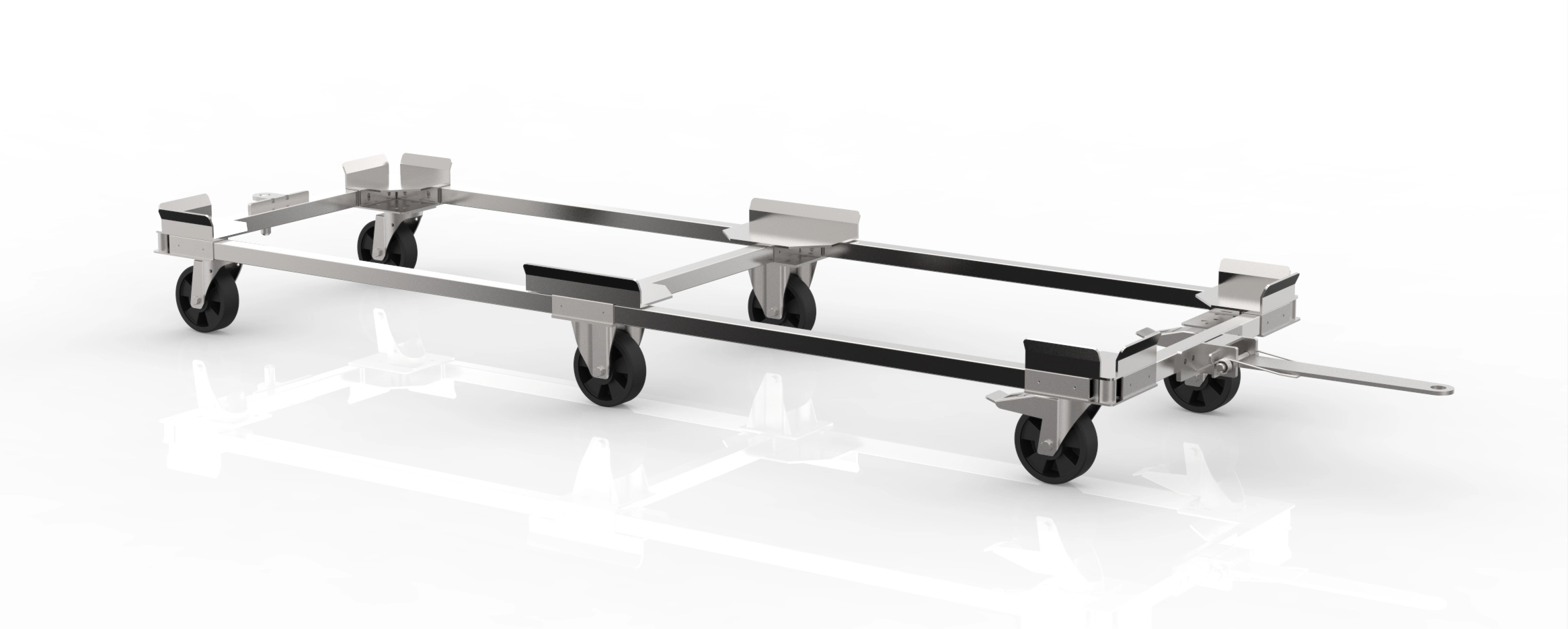 The handling chassis, made of 40x40 mm welded steel tubes, is an ideal solution for various purposes in warehouses, workshops, or manufacturing halls. With a high load capacity of up to 1500 kg, this chassis is designed for transporting heavier items, ensuring maximum efficiency and safety during transport. The chassis is equipped with 6 wheels, 2 of which are swivel with brakes, 2 swivel without brakes, and 2 fixed with a diameter of 160 mm. This combination of wheels allows for easy and stable handling, even with heavy loads. The chassis is available in several surface finishes – galvanized or color-coated, making it suitable for various operating conditions.