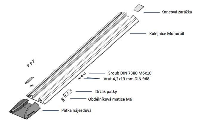 The end foot of the FIFO monorail rail is suitable for smooth loading of warehouse trolleys with wheels into the FIFO monorail profile. The foot has an optimized shape for reliable guidance of trolley wheels.
