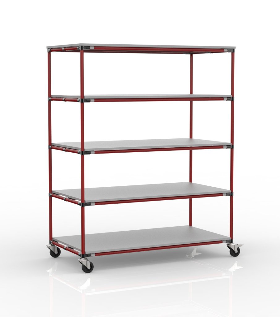 The shelf rack with five straight shelves is a practical helper for handling in manufacturing companies and logistics centers, especially in the field of e-commerce. The cart includes four swivel wheels with a diameter of 100 mm. The advantage of these wheels is low rolling resistance and, thanks to this, comfortable handling. The configuration of the wheels can be changed according to the customer's requirements. Total load capacity 300 kg, load capacity on the shelf 75 kg. Dimensions 1900 x 1505 x 755 mm.