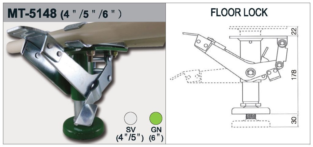 Standing fixed foot MT-5148GN, foot diameter 6 inches. Height adjustable 30 mm. full description and parameters