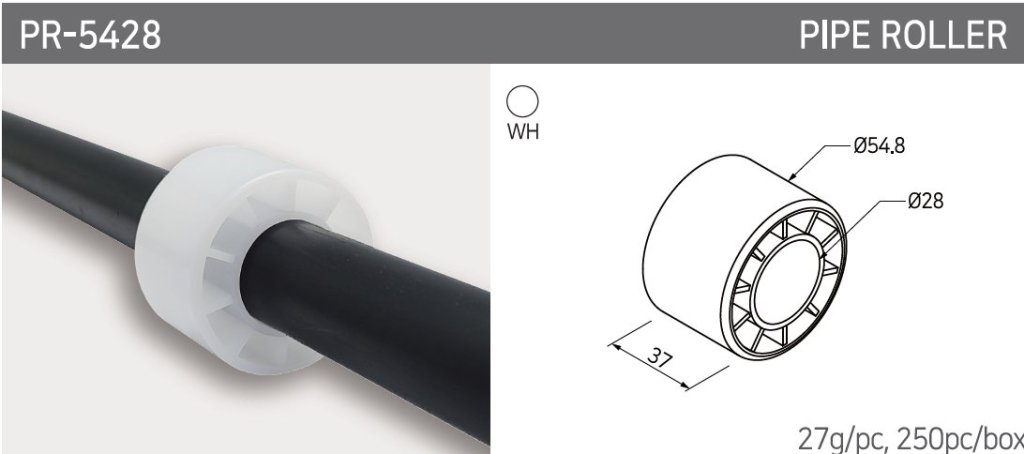 Plastic pipe roller type PR-5428, color white (WH), weight 27 g. full description and parameters