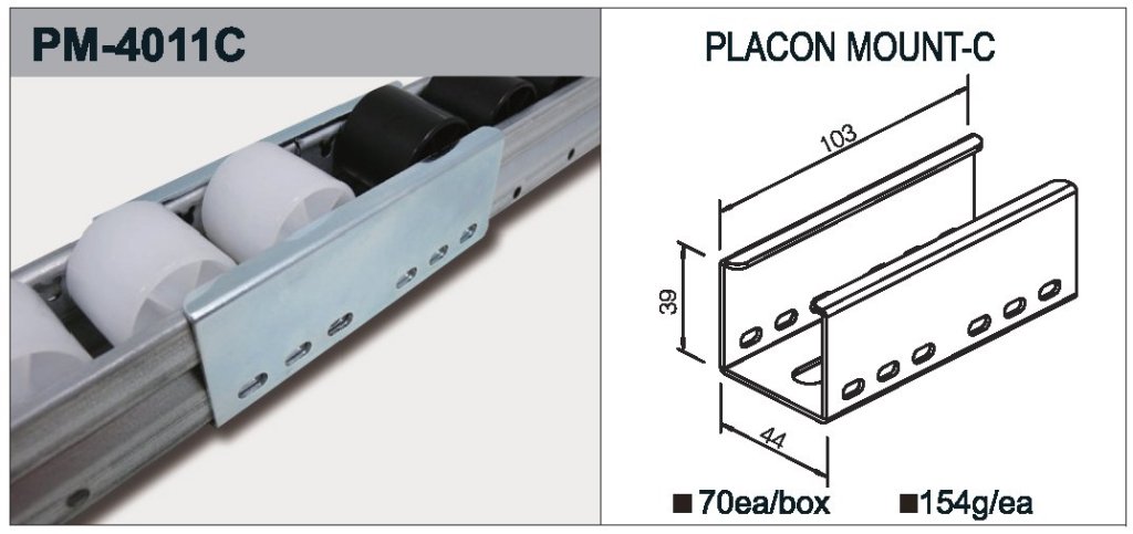 Mounting roller track type PM-4011C. For tracks with a width of 40 mm with a steel body.