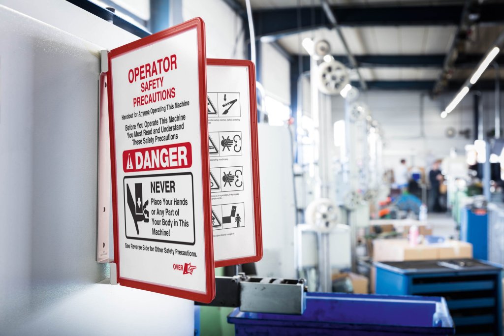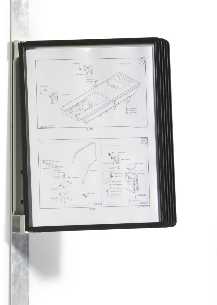 Magnetic wall holder with 5 SHERPA® presentation panels in A4 format in different colors. Easy handling and installation. Thanks to the all-over magnetic surface, the base can be attached to metal surfaces such as machines or shelving systems.